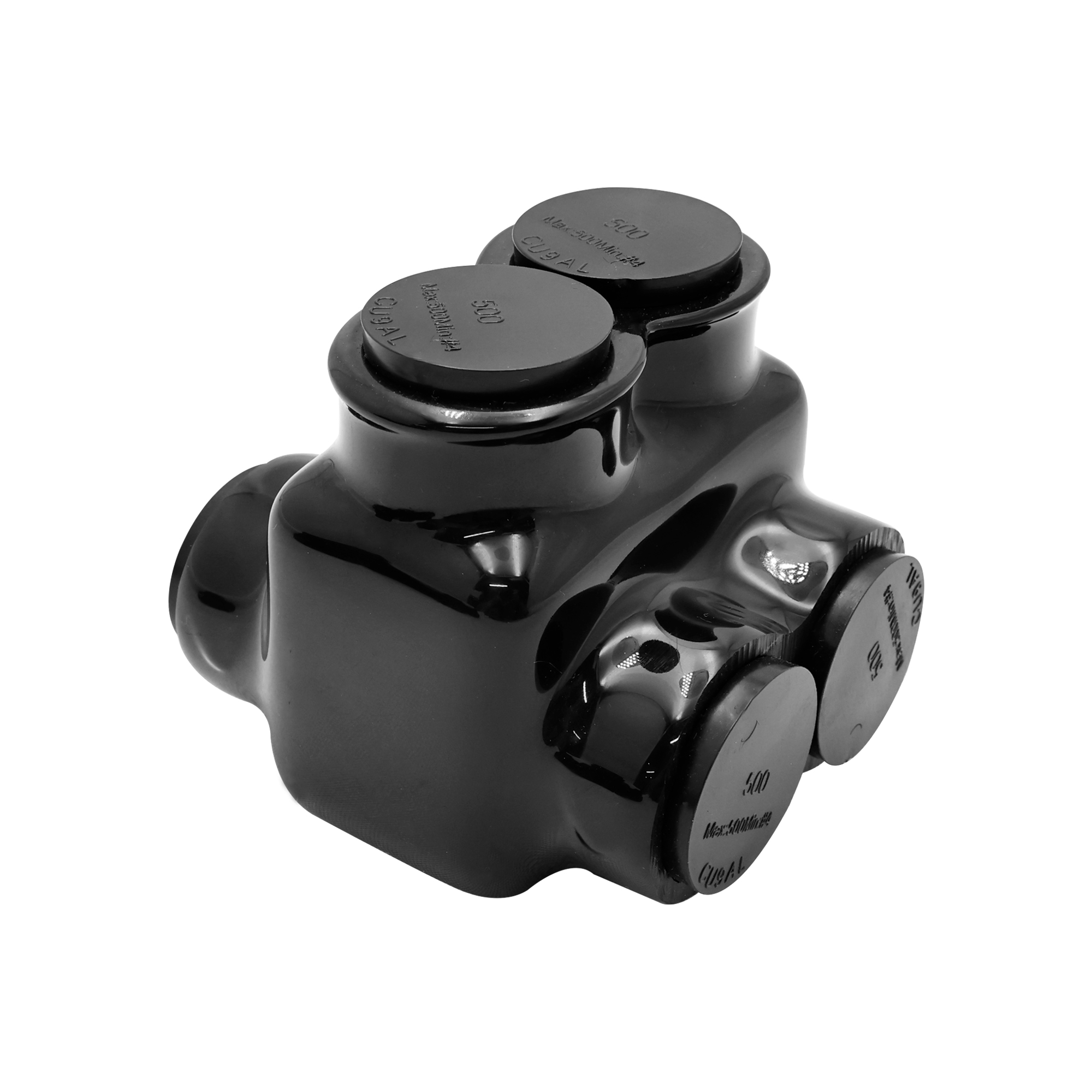 • Insulated connector are suitable for connecting two wires or cables in-line. Used for splicing cables and can be used to replace tradition split bolt splicing for a fraction of the cost in material, time, and labor. Easy re-entry for changes, inspection, or troubleshooting, the connectors are supplied with removable access plugs over the hex screws. One wire per terminal. They are dual rated for use with copper and/or aluminum cables.
