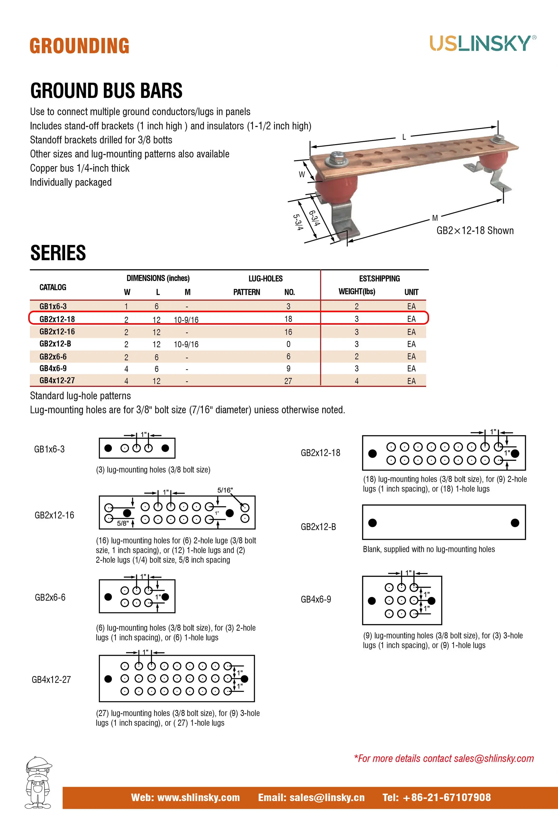 Ground bus bar 2"*12" (18) lug-mounting holes