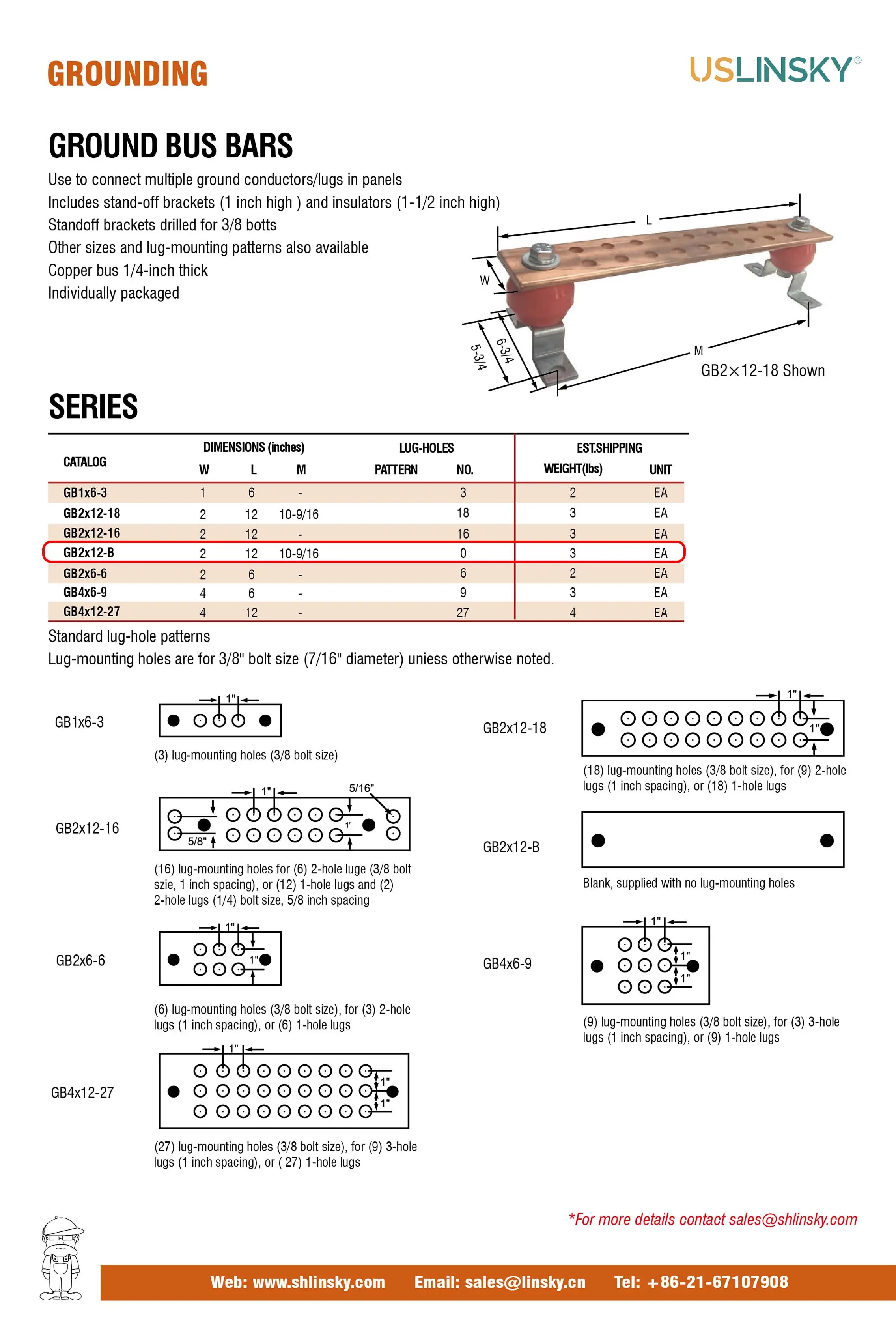 Ground bus bar 2"*12" blank no lug-mounting holes