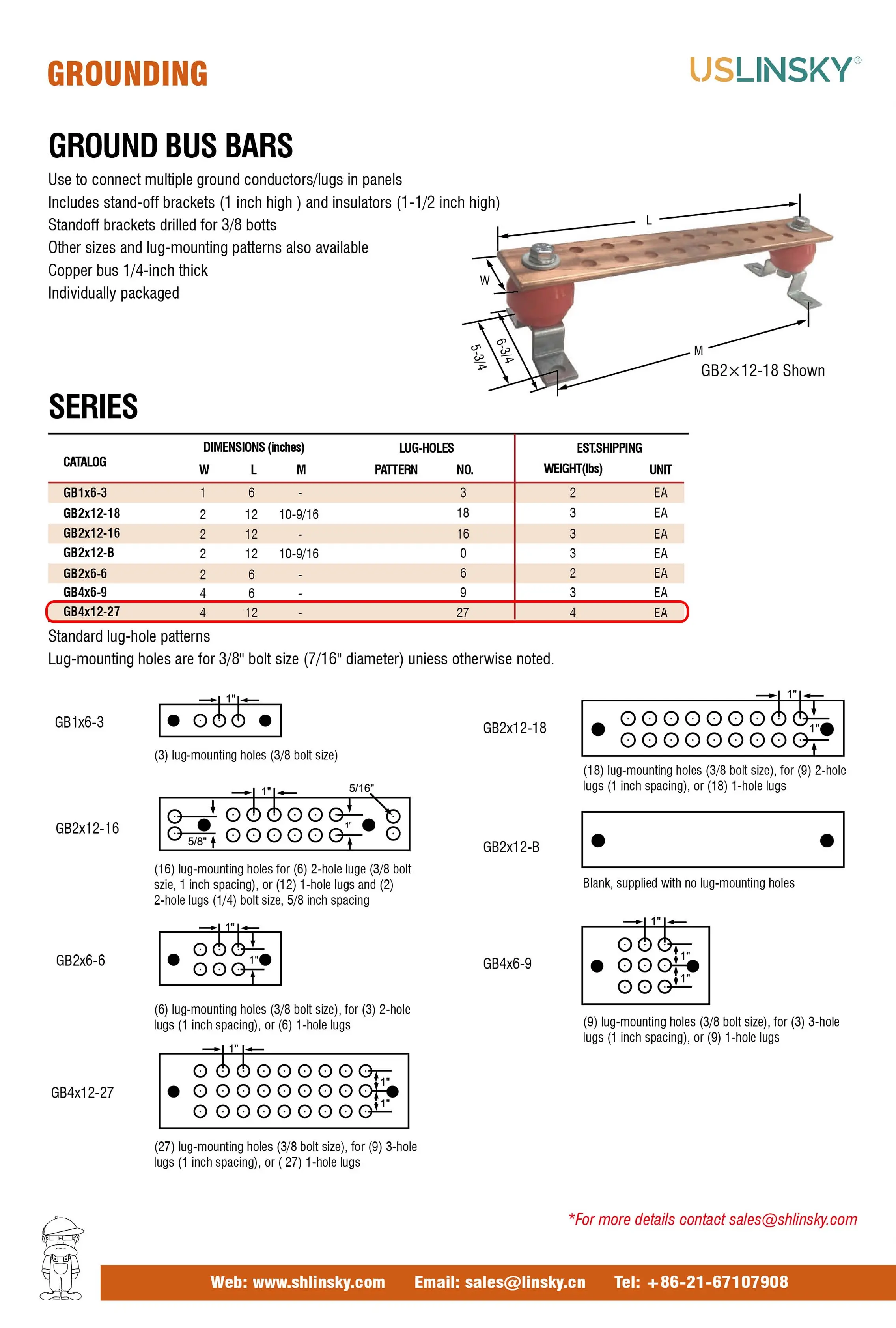 Ground bus bar 4"*12" (27) lug-mounting holes