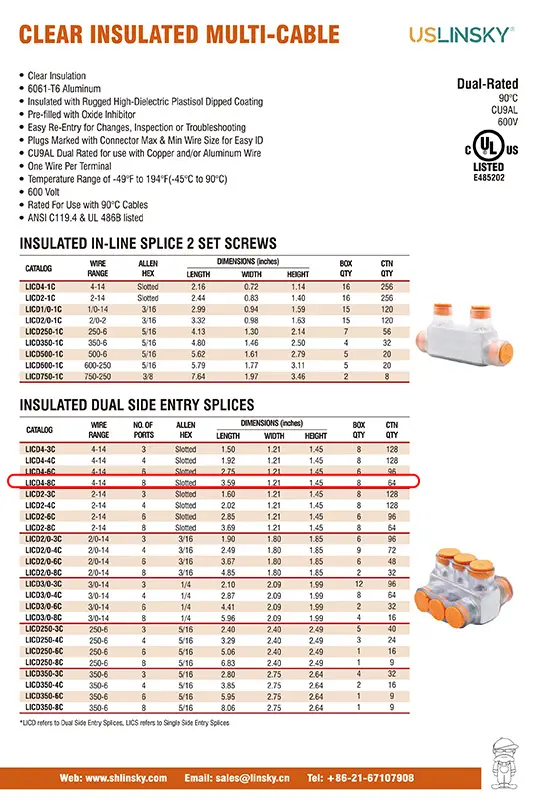 WIRE RANGE4-14 INSULATED DUAL SIDE ENTRY SPLICES 8 ports