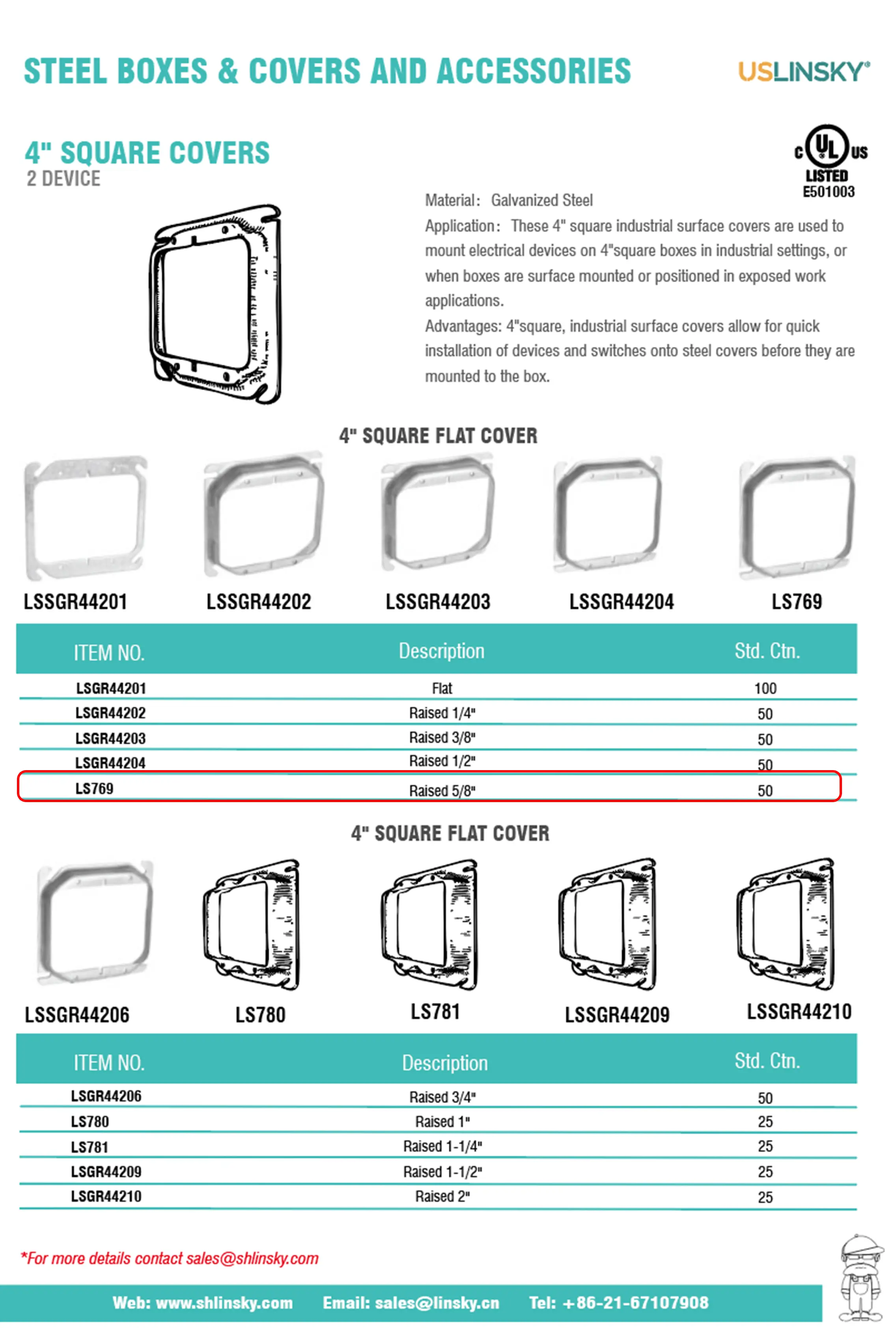 Model Number: LS769 4" SQUARE DEVICE COVER 2 DEVICEDescription: Raised 5/8" |