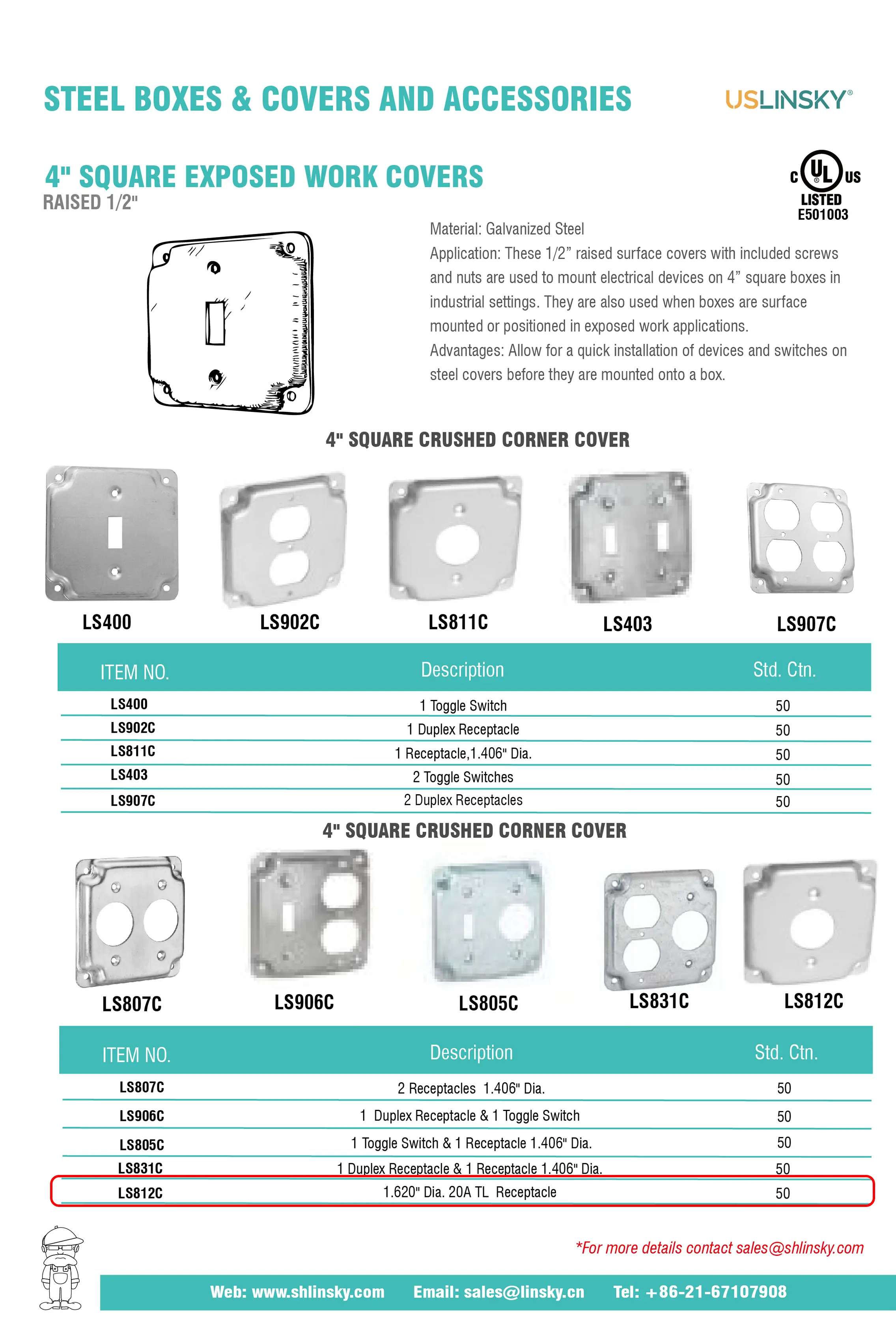 4" SQUARE CRUSHED CORNER COVER RAISED 1/2" Description: 1.620" Dia. 20ATL Receptacle |