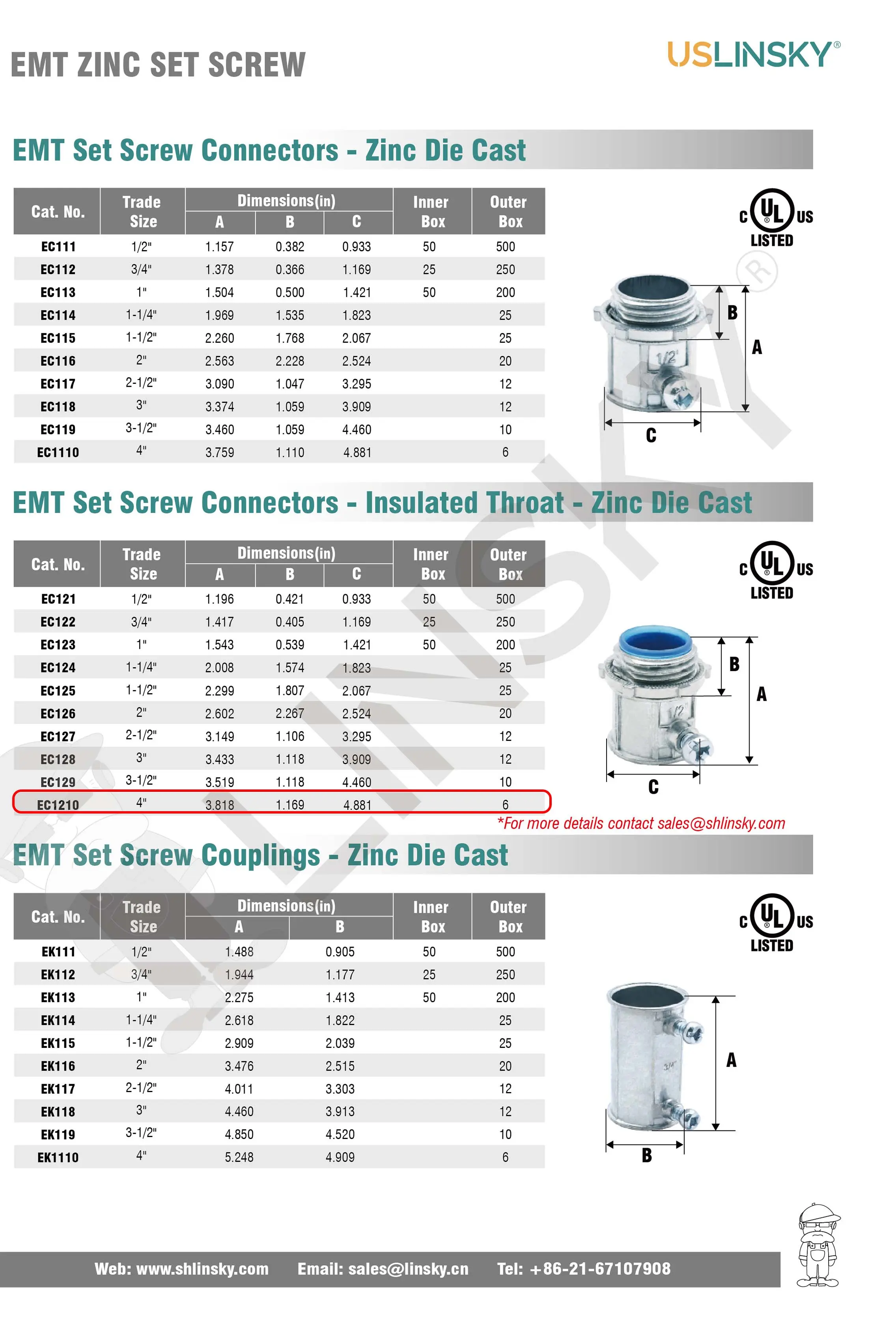 EMT Set Screw Connectors - Insulated Throat - Zinc Die Cast