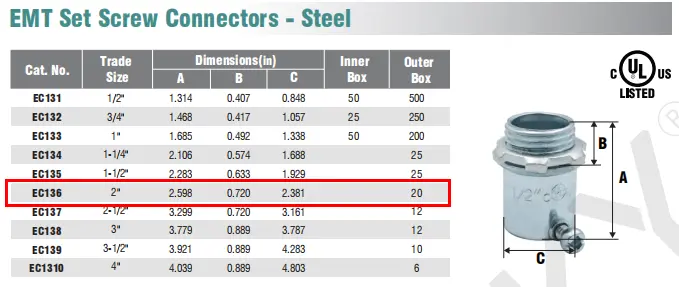 EMT Set Screw Connectors - Steel