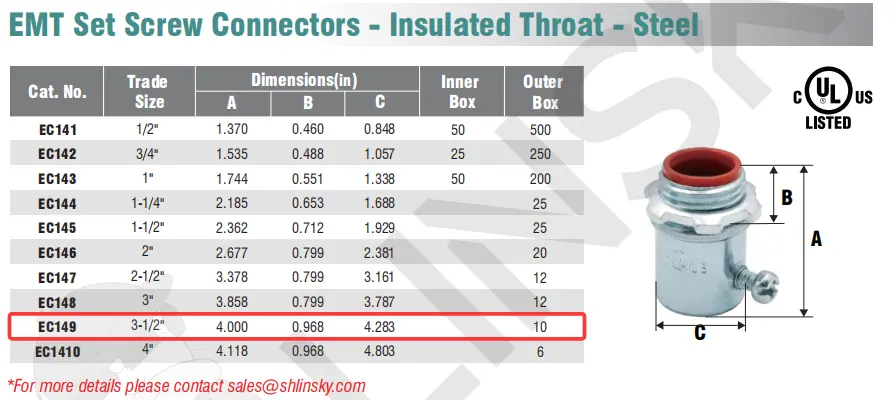 EMT Set Screw Connectors - Insulated Throat - Steel