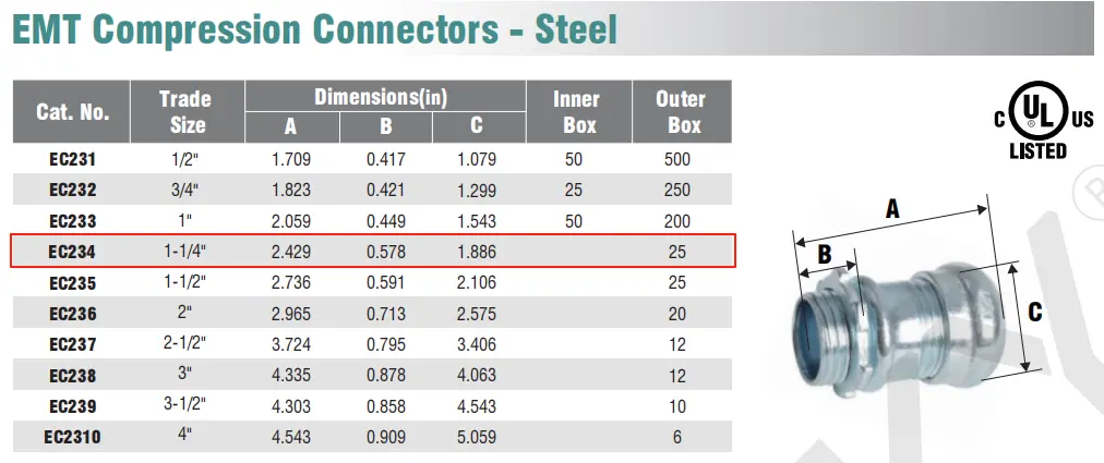 EMT Compression Connectors - Steel