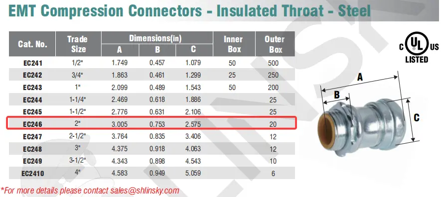 EMT Compression Connectors - Insulated Throat - Steel
