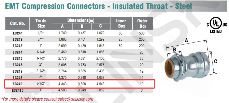 EMT Compression Connectors - Insulated Throat - Steel