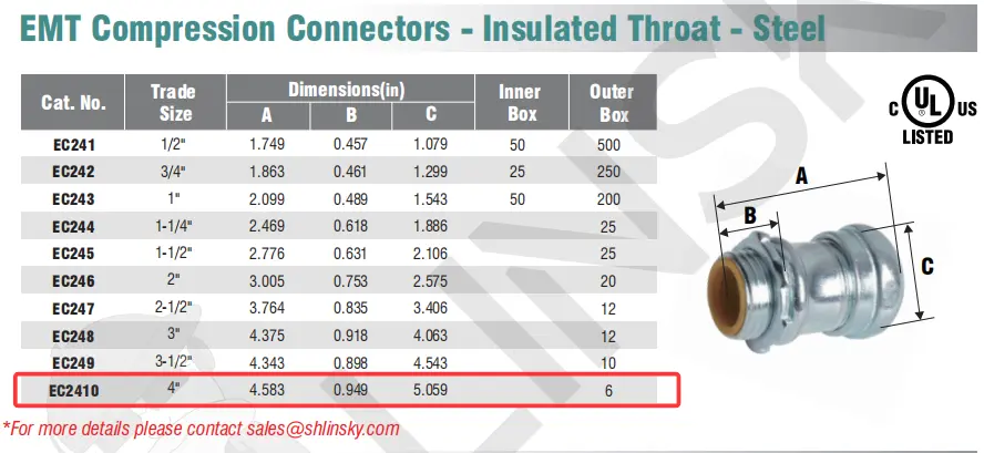 EMT Compression Connectors - Insulated Throat - Steel