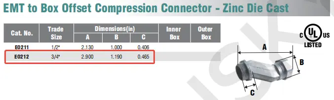 EMT to Box Offset Compression Connector - Zinc Die Cast