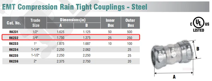 EMT Compression Rain Tight Couplings - Steel
