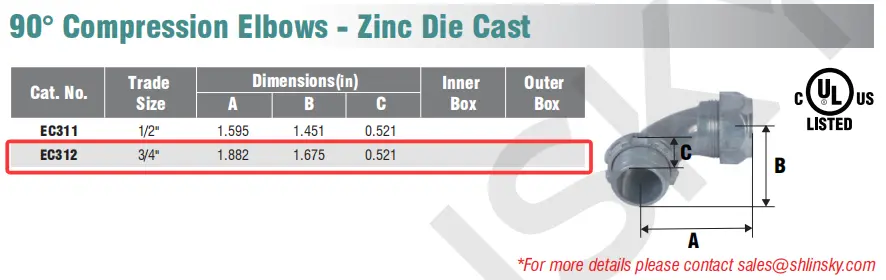 90° Compression Elbows - Zinc Die Cast
