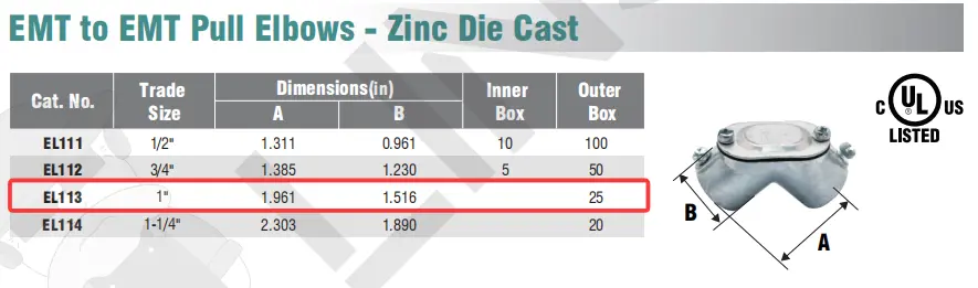 EMT to EMT Pull Elbows - Zinc Die Cast