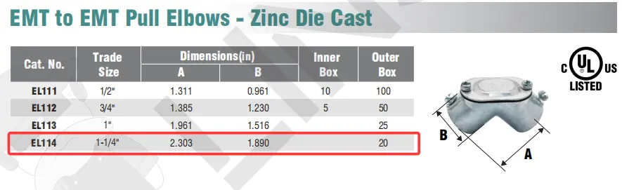 EMT to EMT Pull Elbows - Zinc Die Cast