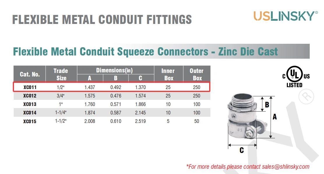 Flexible Metal Conduit Squeeze Connectors - Zinc Die Cast
