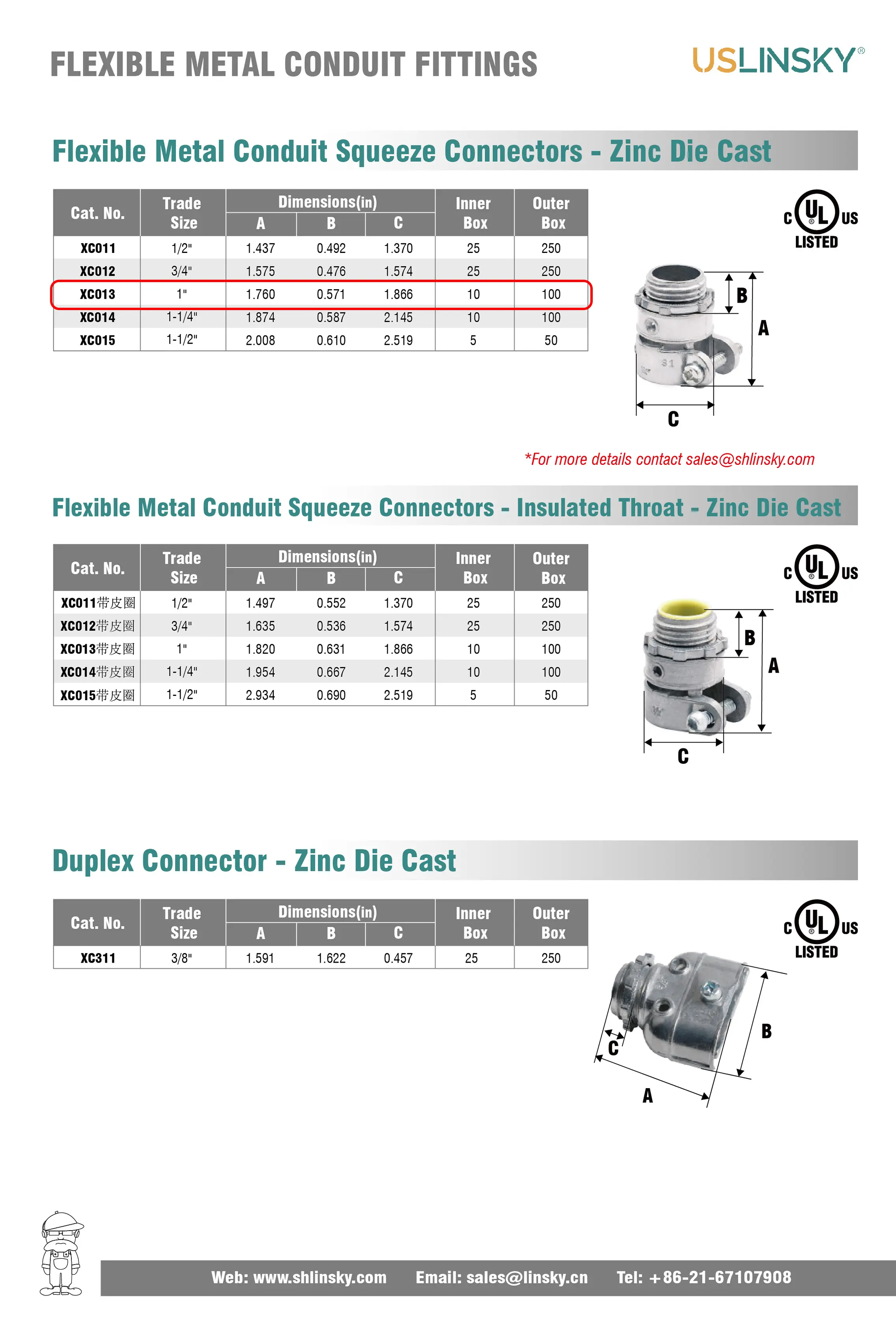 Flexible Metal Conduit Squeeze Connectors - Zinc Die Cast