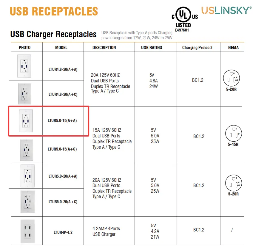 Home > Products > Wire devices > GFCI&USB > LTUR5.0-15(A+A)