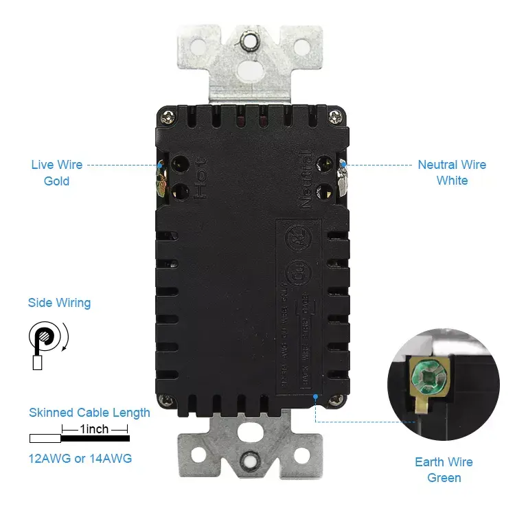 • Tamper Resistant Shutters: Prevent children from inserting any unwanted objects into the outlets