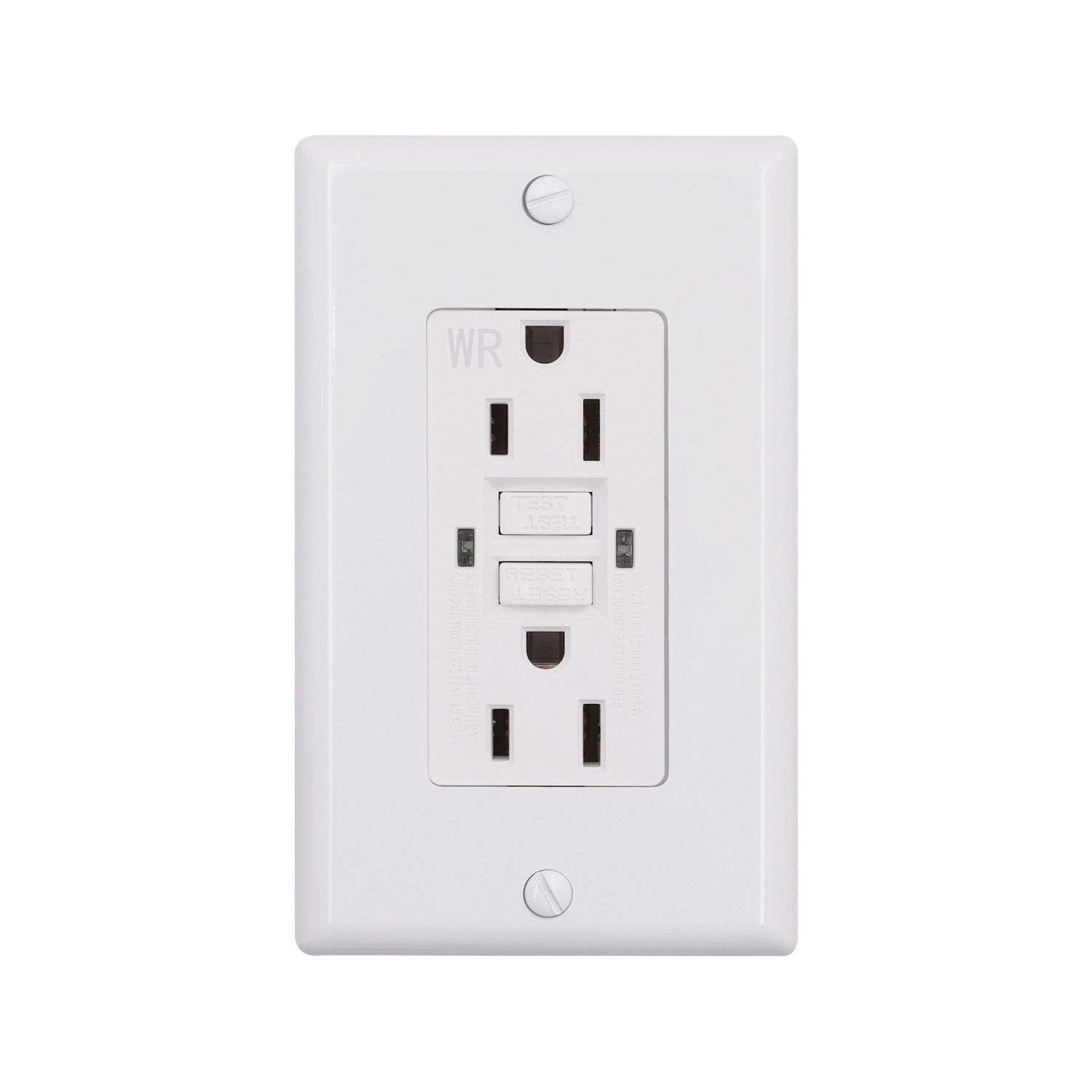 Our Ground Fault Circuit Interrupters (GFCIs) self-test automatically every 15 miniutes to ensure reliable protection from shock due to ground fault occurrences. Meeting National Electrical Code requirements for ground fault protection, GFCI protection is required by code in bathrooms, kitchens, garages, basements, outdoor areas, and for any other outlets found within six feet of a sink or water source. GFCI outlets should always be used when replacing existing GFCI outlets during renovation.