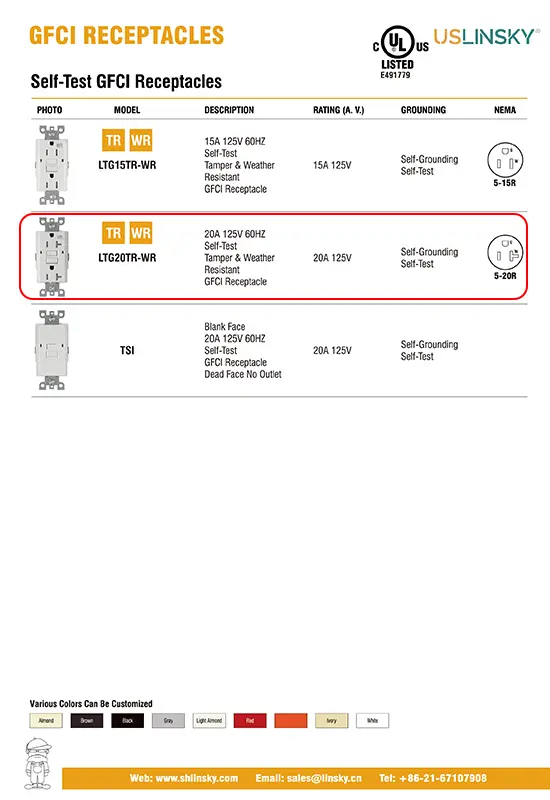 Our Ground Fault Circuit Interrupters (GFCIs) self-test automatically every 15 miniutes to ensure reliable protection from shock due to ground fault occurrences. Meeting National Electrical Code requirements for ground fault protection, GFCI protection is required by code in bathrooms, kitchens, garages, basements, outdoor areas, and for any other outlets found within six feet of a sink or water source. GFCI outlets should always be used when replacing existing GFCI outlets during renovation.