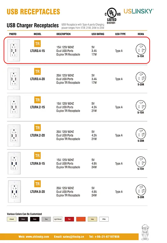 Keeping your phones,tablets and other electronic devices up and runing is essential to staying connected to family, friends, and business. Don’t take chances when you are charging your electronic devices. It is terrible when you stop to charge your phone, only to realize that you don’t have the plug for your USB charg er. How many charger plugs get left at home — or, worse, in a hotel room, at an airport waiting area or... who konws where? In order to meet the essential needs of consumers, Utilizes advanced technology to produce the USB receptacles for fast, efficient charging backed by the quality you expect from the brand you trust.