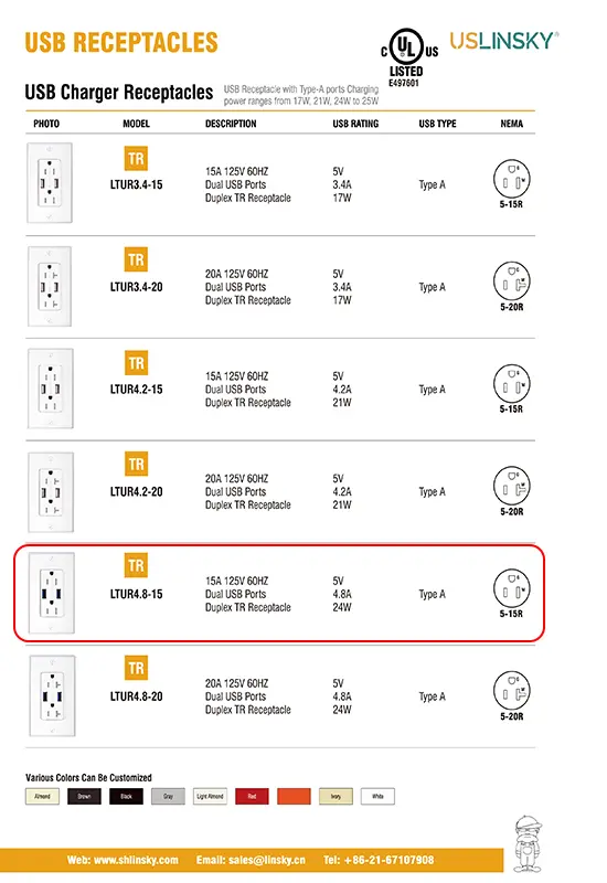Keeping your phones,tablets and other electronic devices up and runing is essential to staying connected to family, friends, and business. Don’t take chances when you are charging your electronic devices. It is terrible when you stop to charge your phone, only to realize that you don’t have the plug for your USB charg er. How many charger plugs get left at home — or, worse, in a hotel room, at an airport waiting area or... who konws where? In order to meet the essential needs of consumers, Utilizes advanced technology to produce the USB receptacles for fast, efficient charging backed by the quality you expect from the brand you trust.