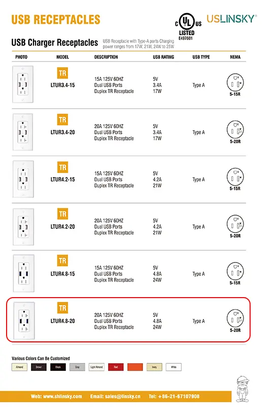 Keeping your phones,tablets and other electronic devices up and runing is essential to staying connected to family, friends, and business. Don’t take chances when you are charging your electronic devices. It is terrible when you stop to charge your phone, only to realize that you don’t have the plug for your USB charg er. How many charger plugs get left at home — or, worse, in a hotel room, at an airport waiting area or... who konws where? In order to meet the essential needs of consumers, Utilizes advanced technology to produce the USB receptacles for fast, efficient charging backed by the quality you expect from the brand you trust.
