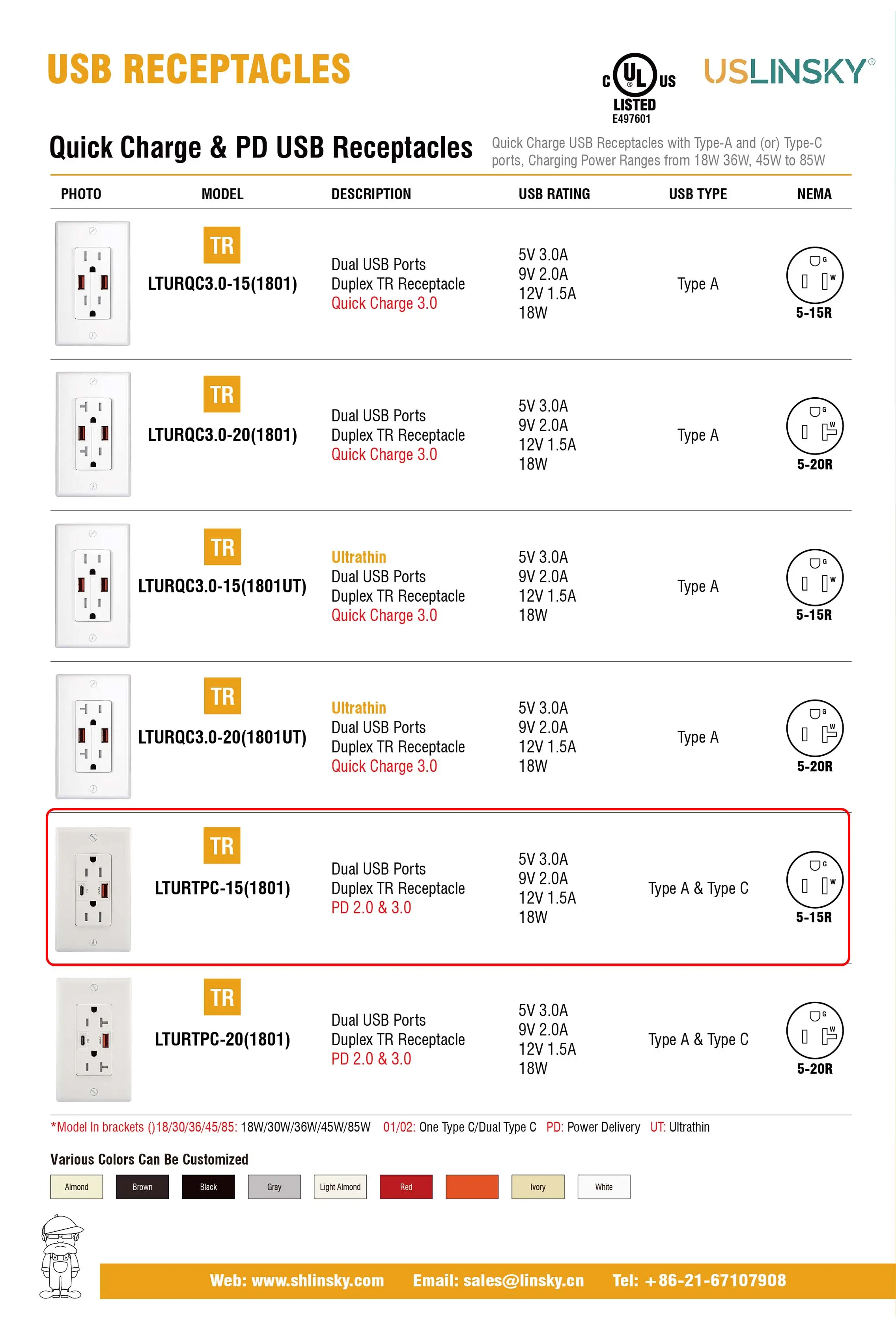 Quick Charge & PD USB Receptacles fit your iPhone, iPad, Android, tablets, and much more without the need of power adapters. Complete the charging quickly and save your time.