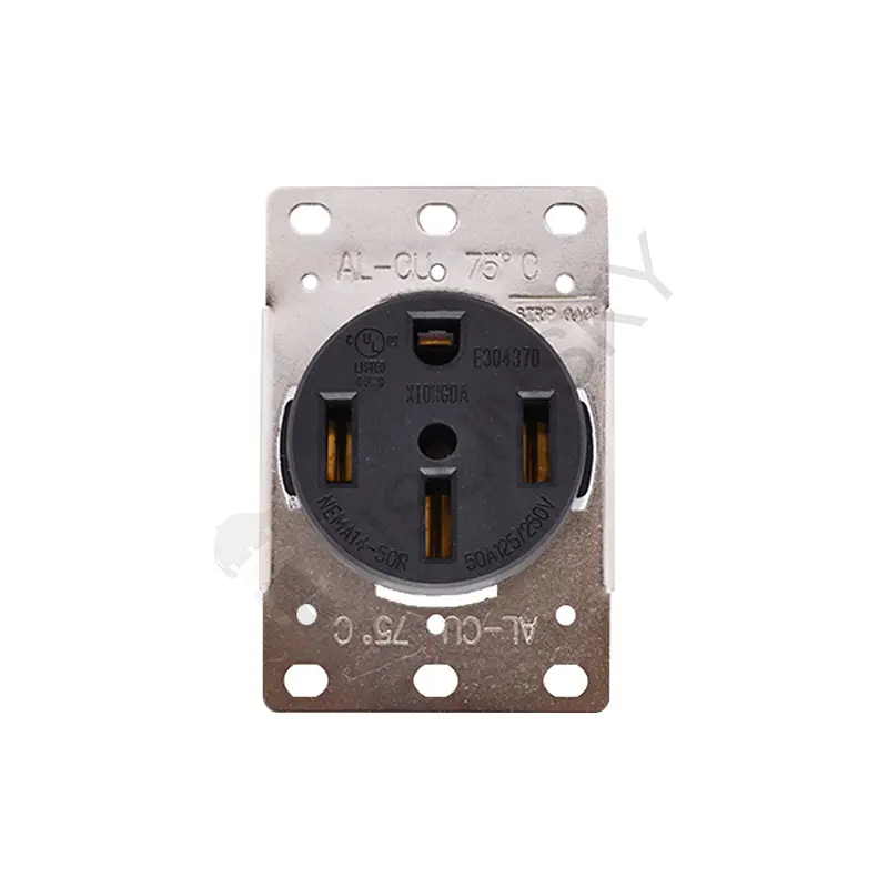50A 125/250V Flush Mounting Power Receptacle, Straight Blade Heavy Duty Range Receptacle, Grounding, 3 Pole 4 Wire
