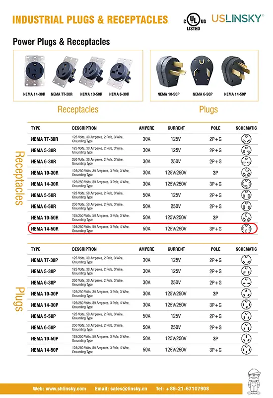 • Widely use for heavy electrical dryers, ranges, (EV) Electric Vehicles, welders, outdoor electrical generators and other heavy duty and high power appliance.