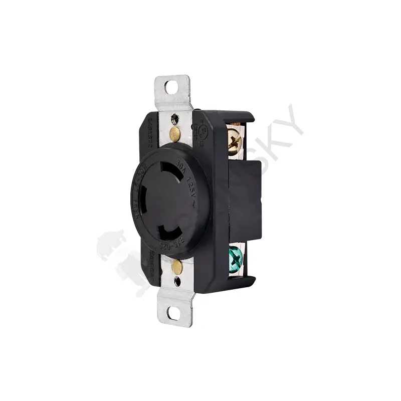 30A 125V Flush Mounting Locking Receptacle, Twist Lock Socket/Outlet for Generator, Grounding, 2 Pole 3 Wire