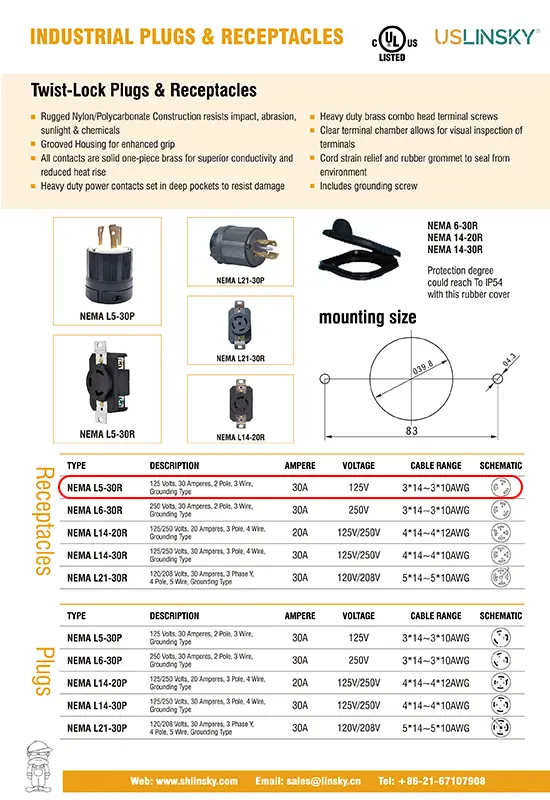 Type: 2-Pole, 3-Wire Grounding Heavy-Duty Twist-Lock Outlet