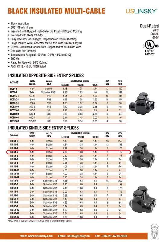#4-14 INSULATED SINGLE SIDE ENTRY SPLICES 5 ports