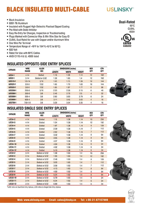 #2-14 INSULATED SINGLE SIDE ENTRY SPLICES 9 ports