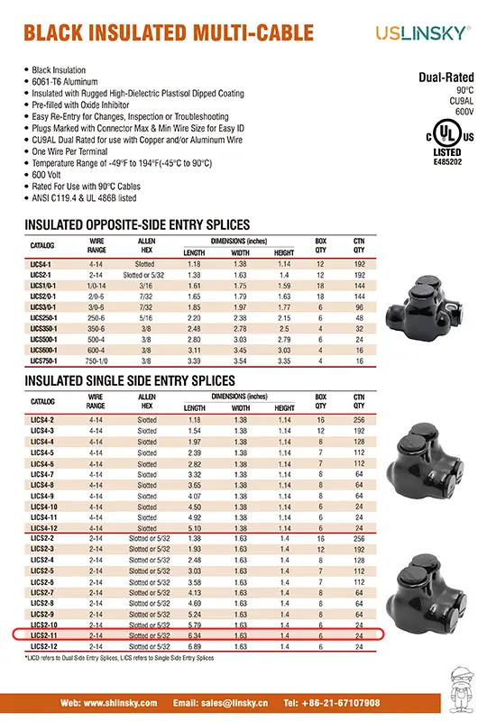 #2-14 INSULATED SINGLE SIDE ENTRY SPLICES 11 ports