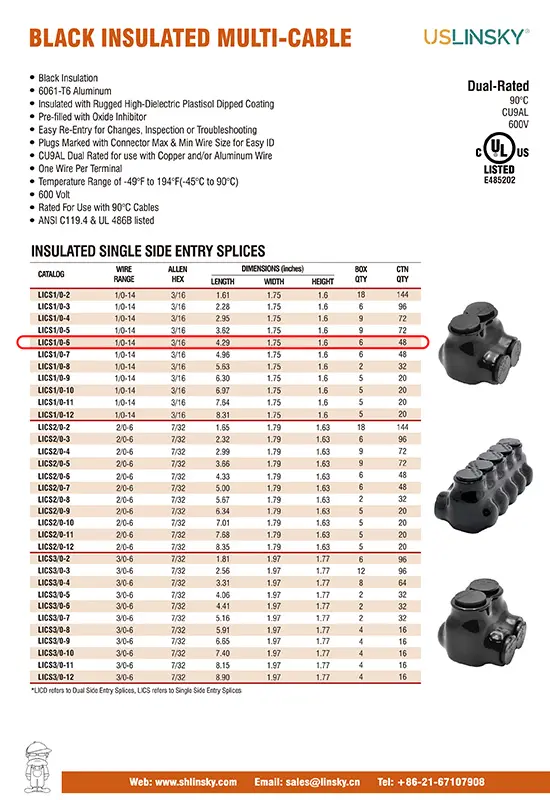 #1/0-14INSULATED SINGLE SIDE ENTRY SPLICES 6 ports