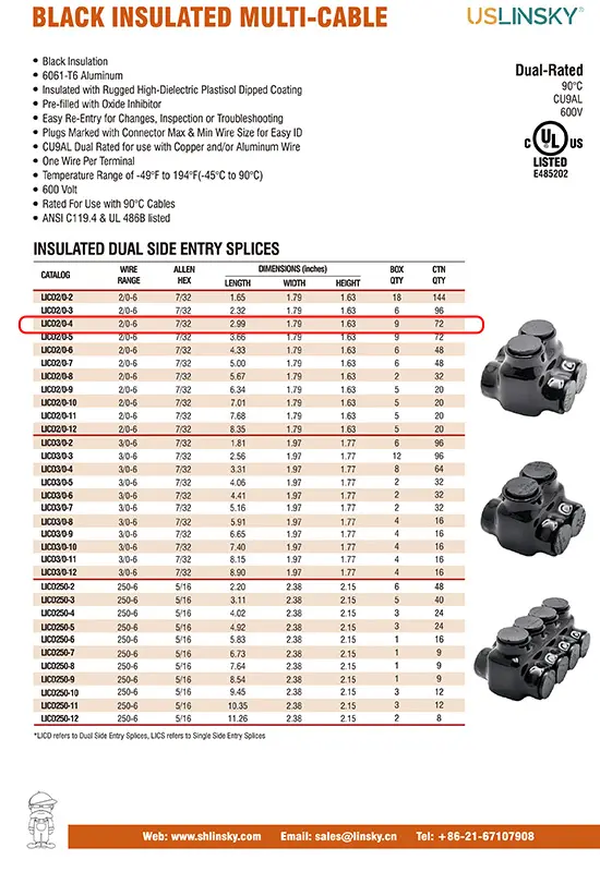 #2/0-6 INSULATED SINGLE SIDE ENTRY SPLICES 4 ports