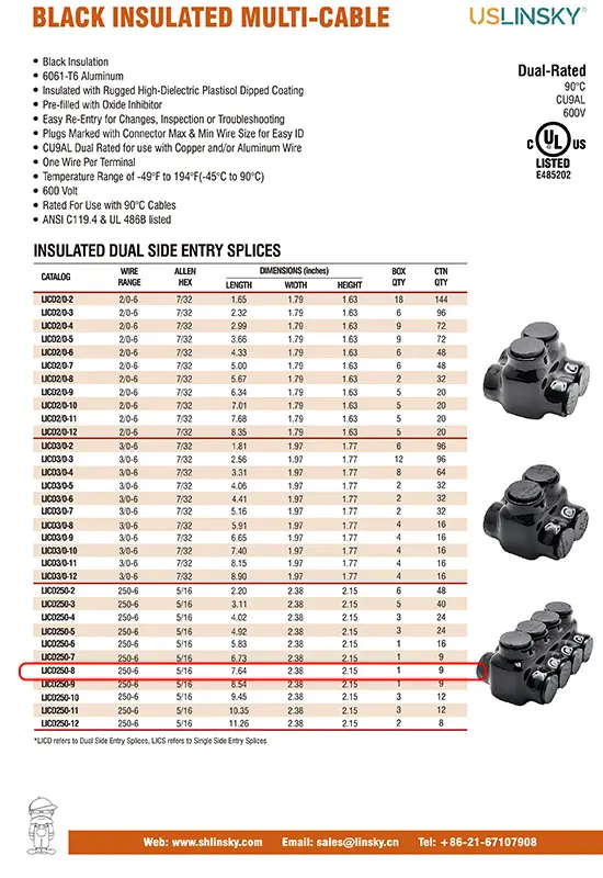 #250-6 INSULATED SINGLE SIDE ENTRY SPLICES 8 ports