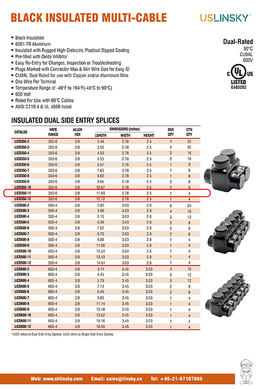 #350-6 INSULATED SINGLE SIDE ENTRY SPLICES 11 ports