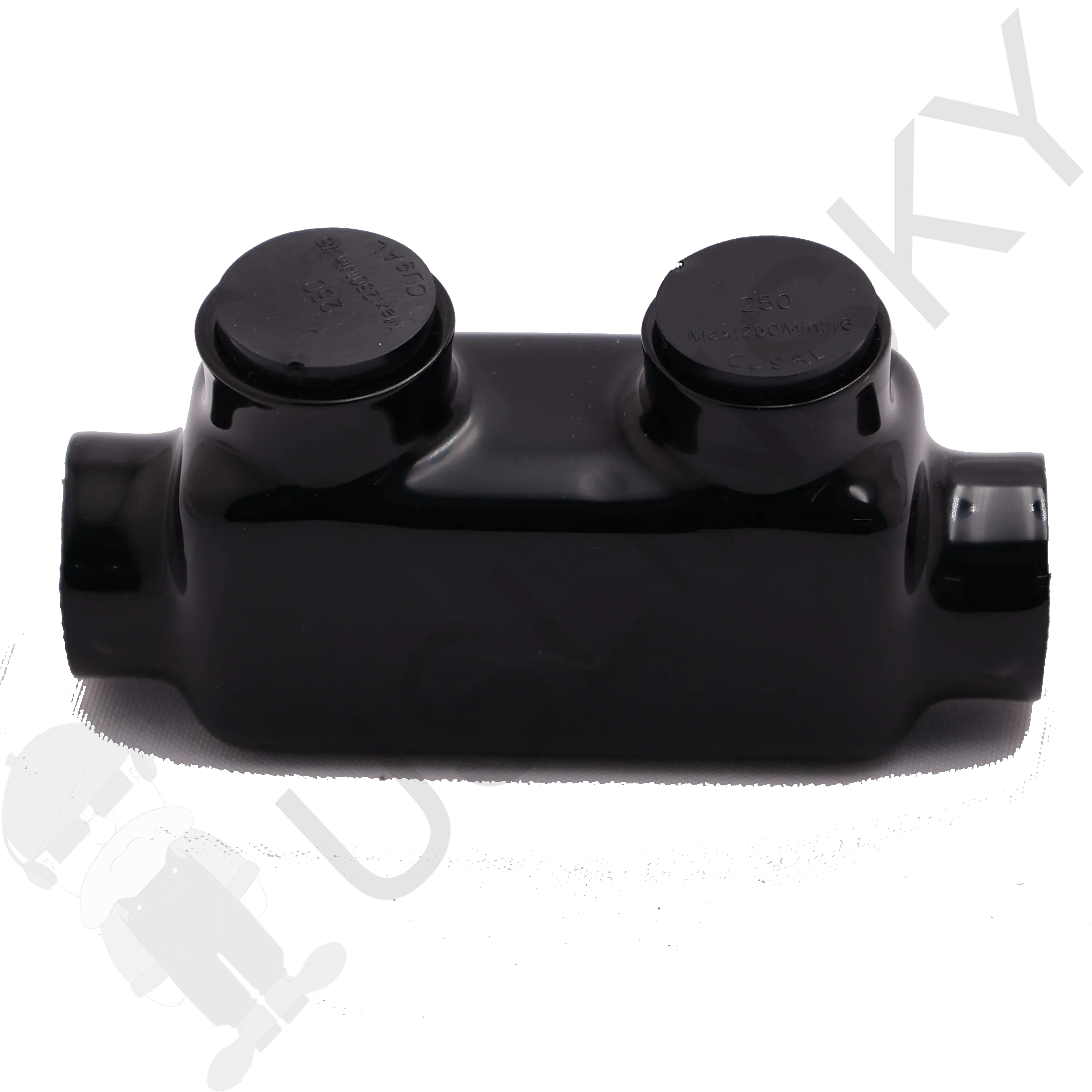 • Insulated connector are suitable for connecting two wires or cables in-line. Used for splicing cables and can be used to replace tradition split bolt splicing for a fraction of the cost in material, time, and labor. Easy re-entry for changes, inspection, or troubleshooting, the connectors are supplied with removable access plugs over the hex screws. One wire per terminal. They are dual rated for use with copper and/or aluminum cables.