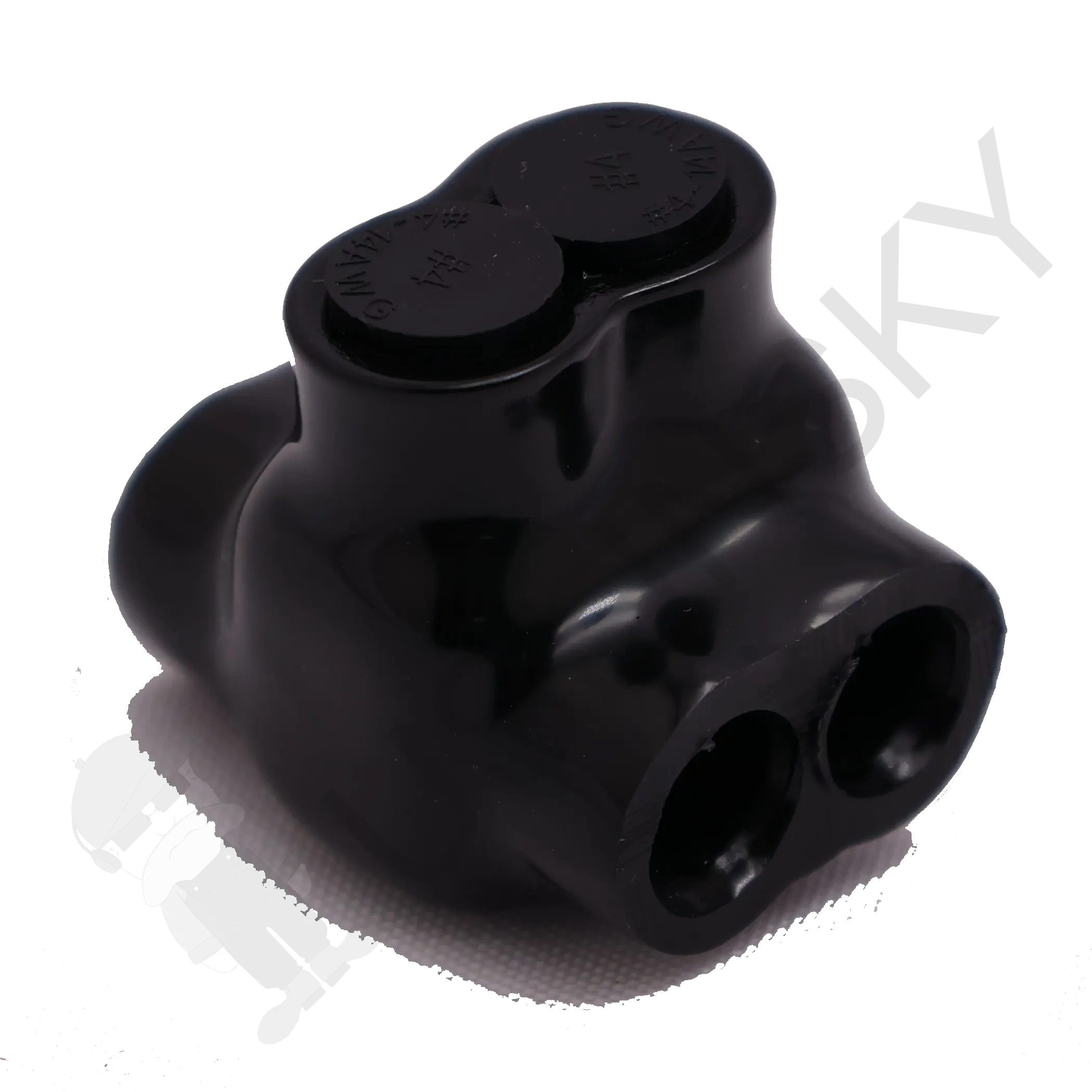 • Insulated connector are suitable for connecting two wires or cables in-line. Used for splicing cables and can be used to replace tradition split bolt splicing for a fraction of the cost in material, time, and labor. Easy re-entry for changes, inspection, or troubleshooting, the connectors are supplied with removable access plugs over the hex screws. One wire per terminal. They are dual rated for use with copper and/or aluminum cables.