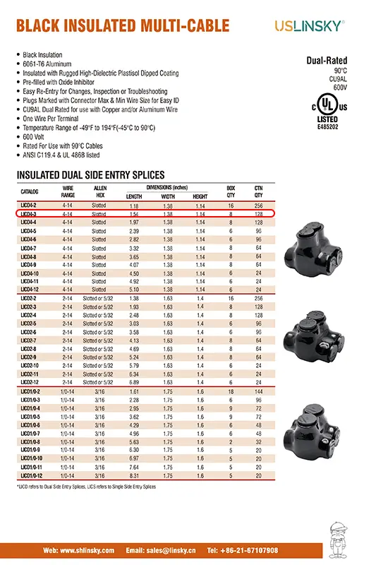 WIRE RANGE4-14 INSULATED DUAL SIDE ENTRY SPLICES 3 ports