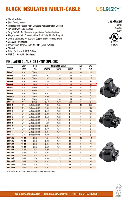 WIRE RANGE4-14 INSULATED DUAL SIDE ENTRY SPLICES 6 ports