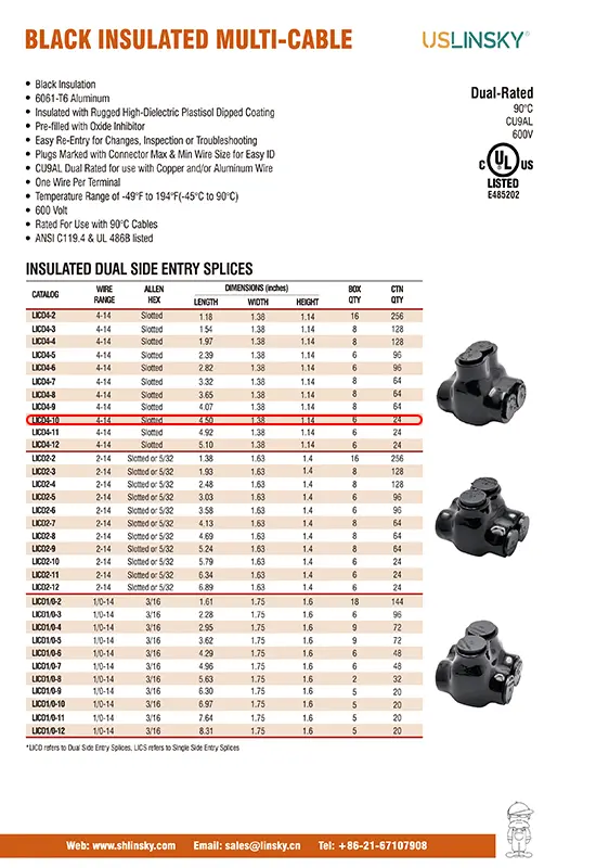 WIRE RANGE4-14 INSULATED DUAL SIDE ENTRY SPLICES 10 ports