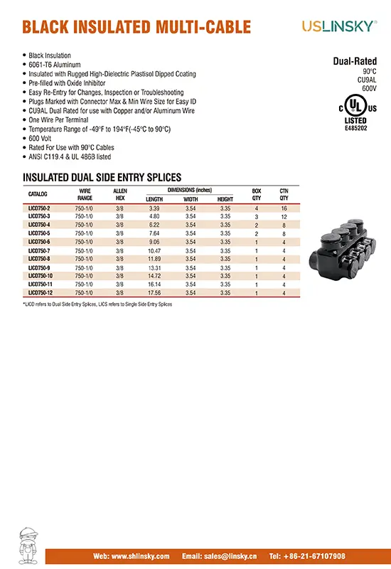 CU9AL Dual Rated for use with Copper and/or Aluminum Wire