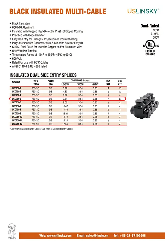 Black insulationANSI C119.4 & UL 486B listed