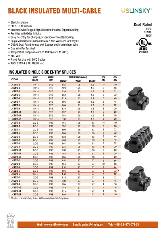 #3/0-6 INSULATED SINGLE SIDE ENTRY SPLICES 5 ports