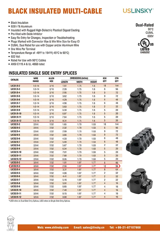 #3/0-6 INSULATED SINGLE SIDE ENTRY SPLICES 3 ports