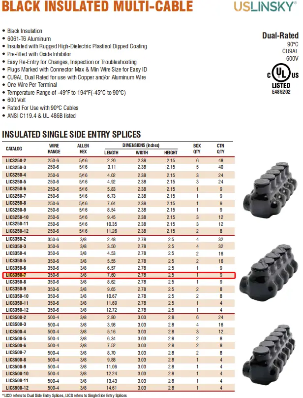 350-6 BLK Single Splice Insulated Connector 7 ports
